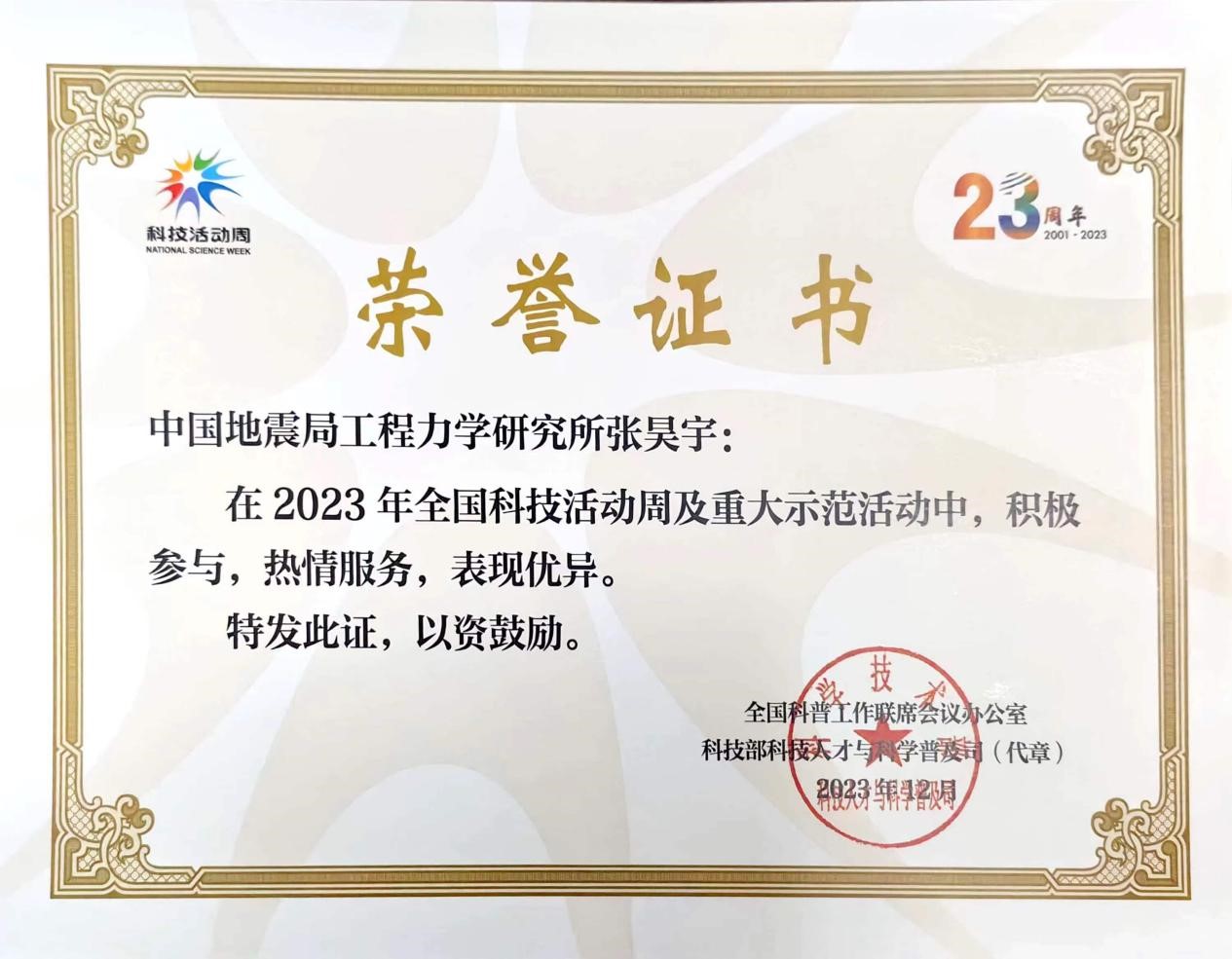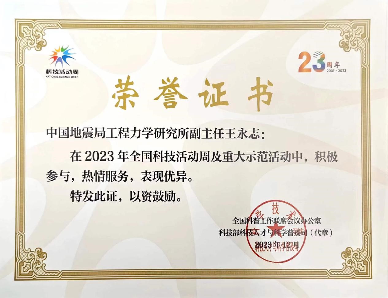 發布時間: 2024-01-26 點擊數量:10477在2023年舉辦的全國科技活動周及重大示范活動中,我所積極參與表現突出,獲全國科普工作聯席會議辦公室表彰。我所科技發展部獲先進集體,王永志研究員、張昊宇副研究員獲先進個人。