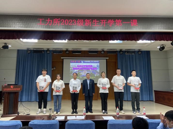 入所教育結束后,李山有講授開學第一課。他帶領大家重溫了劉恢先教授的科學家精神和愛國愛黨情懷,強調科研誠信的重要性,勉勵大家要牢記使命責任,秉承工力所“嚴謹、求真、博學、創新”的精神,學到知識、學會做人。最后,他向黨員代表贈送了《習近平的七年知青歲月》一書,鼓勵同學們成為有理想、敢擔當、能吃苦、肯奮斗的新時代青年。