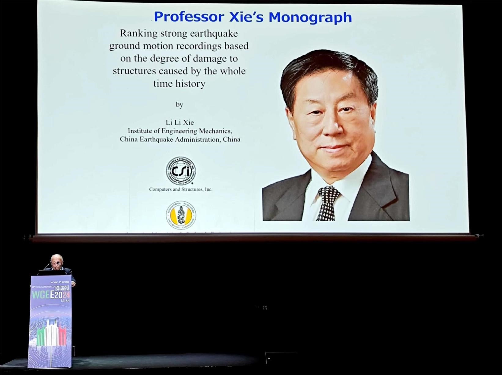 謝禮立以《強地震動按破壞強度的排序研究(Ranking strong earthquake ground motion recordings based on the degree of damage to structures caused by the whole time history)》為題發表了演說,IAEE前主席中島正愛教授親自主持。IAEE專門出資為謝禮立的此項研究成果以“閱讀大師”專著正式出版,并在此次大會上向來自全球100多個國家和地區的四千多名與會學者贈送。謝禮立及其團隊歷經20余年獲得此重大結果。