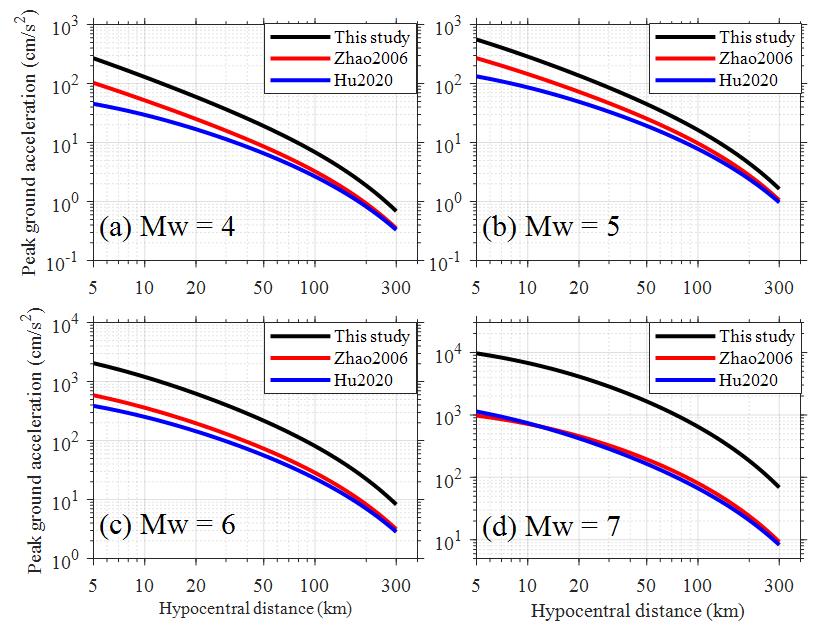 發(fā)布時(shí)間: 2024-04-01 點(diǎn)擊數(shù)量:155972)對(duì)比建立的海域地震動(dòng)預(yù)測(cè)模型和現(xiàn)有陸域地震動(dòng)預(yù)測(cè)模型的PGA和反應(yīng)譜的衰減差異,表明海域PGA和反應(yīng)譜大于相同震級(jí)和距離的陸域PGA和反應(yīng)譜,且隨著震級(jí)的增加,差異逐漸增大。(見(jiàn)圖4和圖5)。