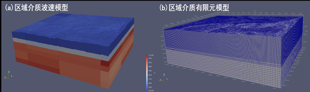 進一步,我們結合震源反演初步結果,采用USTClitho2.0公共波速結構模型(見圖5)和確定性地震動模擬技術,初步再現地震動場的時空發育過程。我們采用了歷史統計得到的破裂時間過程函數,同時考慮了此次地震應力降高的特性。圖6給出了模擬的水平向和豎向峰值速度空間分布。從模擬結果可以看出,盡管沒有考慮地表土體對地面運動速度的放大作用,模擬值偏低,但模擬結果與烈度儀實測峰值速度場大致吻合。為此,進一步確定了發震震源的高應力降是造成此次地震記錄高異常峰值普遍存在的主要原因。