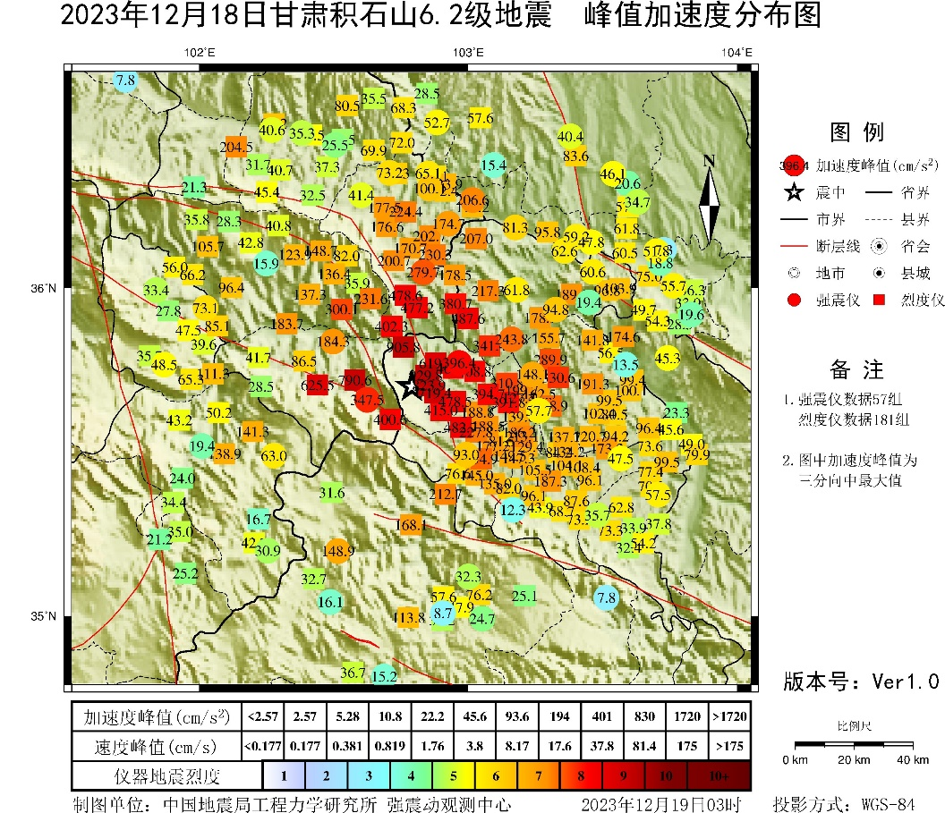 發布時間: 2023-12-19 點擊數量:7842中國地震臺網正式測定:12月18日23時59分,在甘肅臨夏州積石山縣(北緯35.7度,東經102.79度)發生6.2級地震,震源深度10公里。