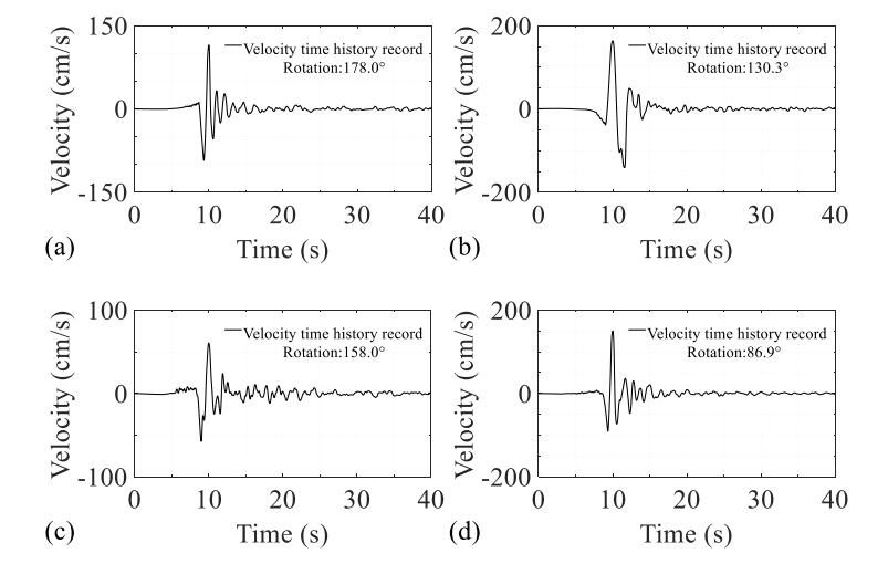 圖1 部分海域脈沖型地震動(dòng)記錄:(a)KME17臺(tái)站,(b)KME18臺(tái)站,(c)KME19臺(tái)站,(d)KME20臺(tái)站