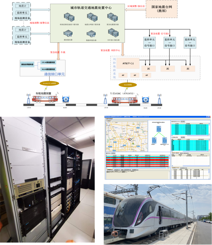 圖2 項目研發的城市軌道交通地震緊急處置系統及其在國家鐵道試驗中心進行示范應用情況