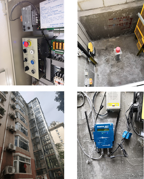 圖5 項目研發的電梯緊急地震開關及其在武漢尚隆地球村進行示范應用情況