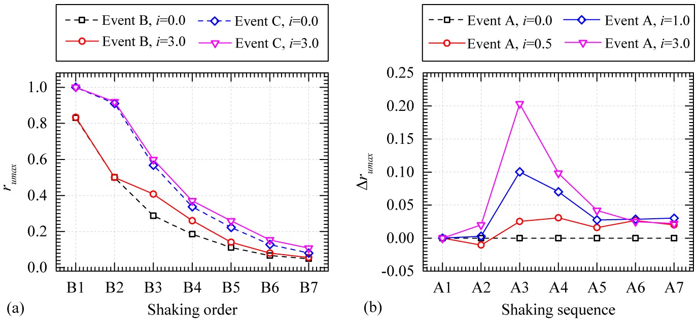 針對(duì)淺表層砂土的反復(fù)液化問(wèn)題,開(kāi)展了地震-孔隙滲流耦合作用下砂土液化的模型試驗(yàn),揭示了震后再固結(jié)階段向上的孔隙水滲流對(duì)淺表層砂土地基抗液化能力的影響。基于自主研制的地震-滲流耦合作用試驗(yàn)裝置(圖1),研究了不同水力梯度、滲流時(shí)間、地震歷史作用下,淺表層砂土在連續(xù)地震作用下抗液化能力的演化規(guī)律。結(jié)果表明(圖2):(1)存在一定的水力梯度閾值,當(dāng)所施加的水力梯度大于該閾值時(shí),滲流作用會(huì)降低砂土抗液化能力,且降低程度隨著滲流時(shí)間的增長(zhǎng)而增強(qiáng)。(2)隨著峰值地震加速度的增加,滲流作用對(duì)淺表層砂土地基抗液化能力的削弱程度呈先降低后增加的規(guī)律。(3)不同振次后的滲流作用對(duì)淺表層砂土抗液化能力的削弱作用不同,總體來(lái)說(shuō)削弱程度隨模型地基密實(shí)度的提高而降低。